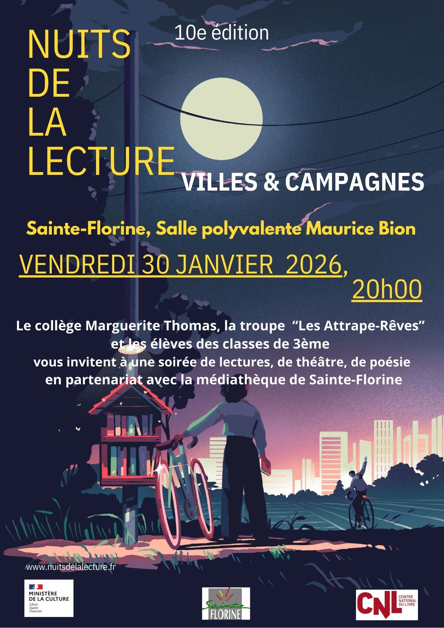 Le collège Marguerite Thomas, la troupe "Les Attrapes-Rêves" et les élèves des classes de 3ème vous invitent à une soirée de lectures, de théâtre, de poésie en partenariat avec la médiathèque de Sainte-Florine.